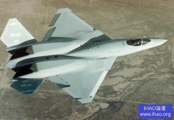 梯形翼,V形尾,鏟形前機身,S形進氣道,變循環發動機,尾噴口在下方受到屏蔽,紅外隱身。和YF-22相比,YF-23的超音速巡航速度更快(據說達到1.6馬赫以上),隱身性能更好,但由於前衛的V型尾設計使它的機動性稍遜YF-22,而且沒有採向量噴嘴技術。雙方在性能上的各有千秋是因為各自對空戰的不同了解導致的,如果給機動性強悍的F-22打滿分,側重隱身的YF-23為什麼不可以?如果沒有F-22,那麼YF-23服役還會有什麼問題