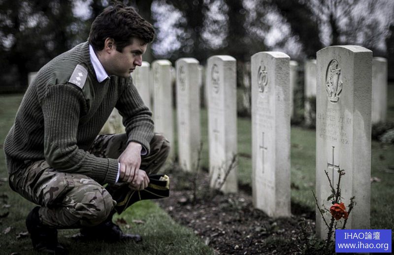 迪安·多克拉拍攝的“我們會銘記他們”,一位士兵若有所思地凝視著墓碑,上面刻著“一位皇家國王愛爾蘭輕騎兵”