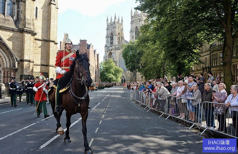 莫里森拍攝的英軍騎兵編隊走過約克街頭