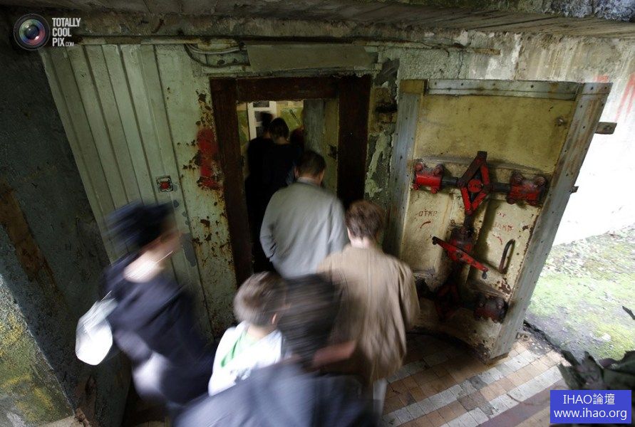 德國溫斯道夫,前蘇聯軍隊在1945年後使用的一座碉堡,一名導遊站在重型加固門旁邊。