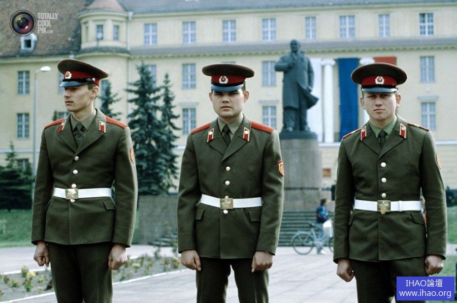 東德溫斯道夫,3名蘇聯士兵站在蘇聯軍事總部前警戒。