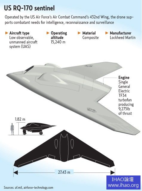 飛機墜落地面時受損輕微。由洛克希德馬丁公司研製的RQ-170,是美軍最先進的無人偵察機之一。 伊朗