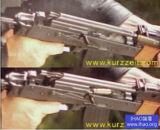 AK47 步槍射擊精度差、連發跳動猛烈的一個重要因素就是過於強調結構簡單、製造成本低、可靠性高。這些要求使得該槍選擇了與槍機框連為一體的活塞,而且從槍管引出燃氣的導氣孔也只有一個不可調的大氣孔。在每一次射擊循環中,彈殼內發射藥爆燃的高溫高壓氣體都將盡所能可能多的通過活塞猛烈推動槍機向後運動,直到其撞擊到機匣底部停下為止。這種設計只求槍機在運動過程中推開一切泥沙等外物的阻礙,不至於卡殼,既不過多的考慮槍是否打得準,射手是否感覺舒適,也不過多的考慮槍械的壽命。