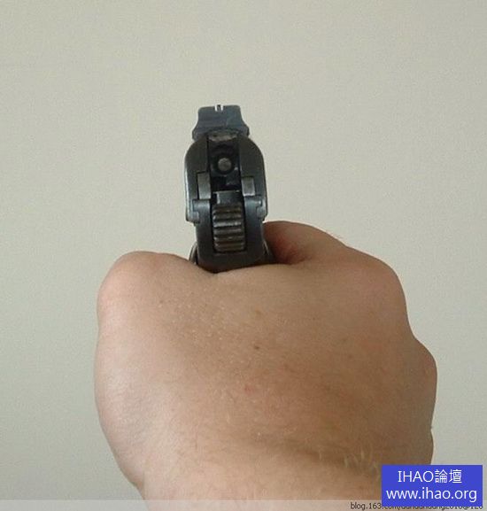 俄國TT-33 手槍缺口式照門和片狀準星的瞄準狀態,即缺口、準星、目標“ 三點成一線”
