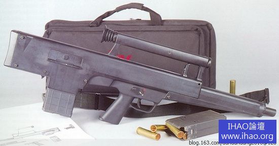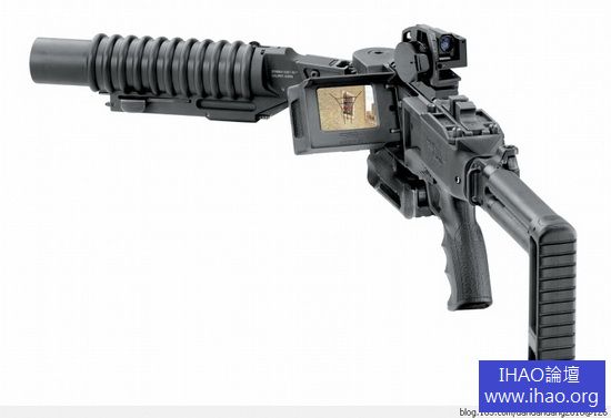 HK 公司研製的試驗型管退式自動霰彈槍,其瞄準鏡和握把合二為一。這種瞄準裝置兼做其它用途的設計在現代步槍上非常流行
