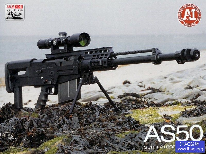 第七名AS50 AS50 12.7mm口徑半自動狙擊步槍是由AI公司專門為美軍特種部隊設計的,更明確地說,它是為美國海軍海豹部隊提供的反器材遠程狙擊步槍。AS50使用的子彈是.50(12.7毫米)口徑的的子彈,射程遠、出彈快、後坐力小,裝備美國海豹突擊隊。可在1.5秒之內擊發5顆子彈,射程高達1.5英里。所以它是當今最尖端的武器之一。