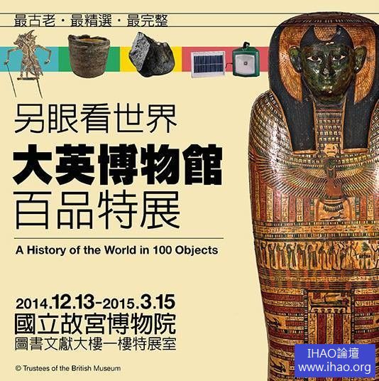 2015年,適逢故宮90週年院慶,大英博物館與國立故宮博物院、時藝多媒體、閣林文創聯手呈現「另眼看世界─大英博物館百品特展」,由大英博物館館藏中,精選出在人類歷史上深具影響力的100組件展品,帶您以不同的角度,另眼看世界。