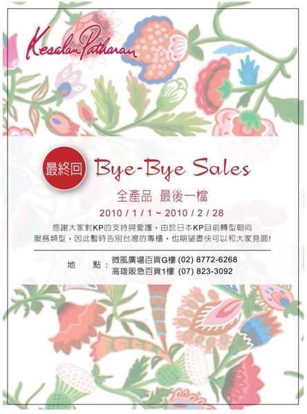 日本PIAS集團將於2010年2月底暫時告別KESALAN PATHARAN台灣專櫃的營業。KESALAN PATHARAN目前在日本積極轉型為提供精緻服務型態「Eyelash Designing-植睫毛」的專櫃;聘請專業植睫毛師,提供衛生清潔的器材、雅緻舒適的空間、放鬆舒緩的環境,針對個人造型設計的植睫毛等更頂級品質的服務。因此台灣KESALAN PATHARAN即將在2010年2月底暫時告別,並在2010年1月1日起到2月28日於專櫃展開感恩特賣會。