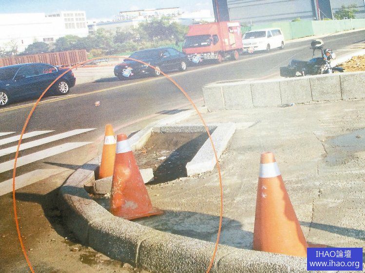 洪姓工程師騎車撞路邊緣石(紅圈處),連人帶車撞向水泥護欄重傷,胸部以下癱瘓。 記者王敏旭/翻攝