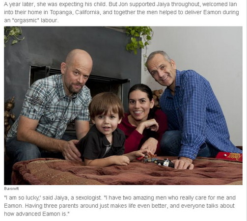 一夫多妻的例子不罕見,但美國34歲的性學專家潔雅瑪(Jaiya Ma)倒是為女人出口氣,她和男友、情人、與情人生的兒子三個男人同住,一家四口其樂融融,她說,「我擁有兩個愛我的男人,小孩有一個媽媽兩個爹地,生活更美好!」至於房事呢,按表操課就搞定了。