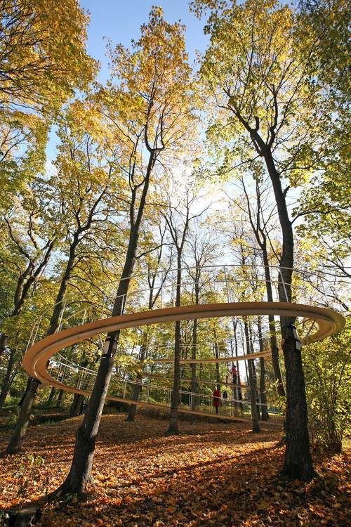 你喜歡有季節感的浪漫風情嗎?雙腳踩在沙沙作響的落葉上,停駐在森林環繞的半空中,這聽起來是不是就是你的夢幻王國?在波羅的海三小國~愛沙尼亞的首都圖林附近,日本建築師近藤哲雄蓋起了這條「森林中的步道(A Path in the Forest)」,一條與樹木共存的步道,在離地幾公尺之上蜿蜒曲折,引導旅人走進森林的深處。