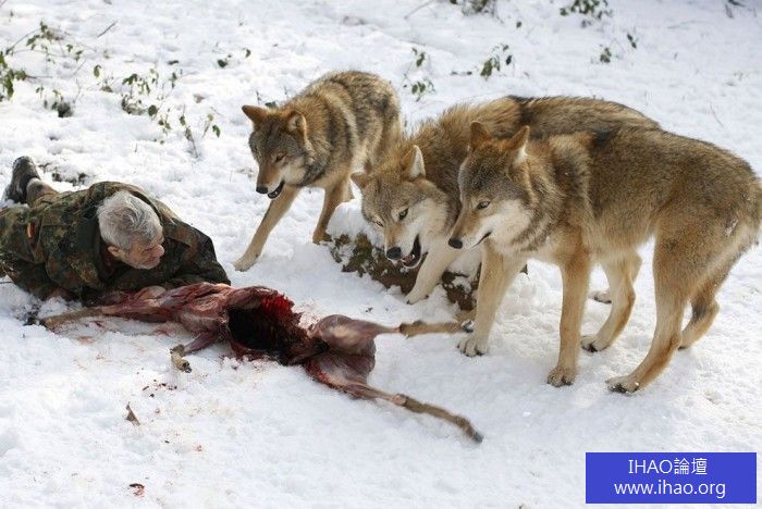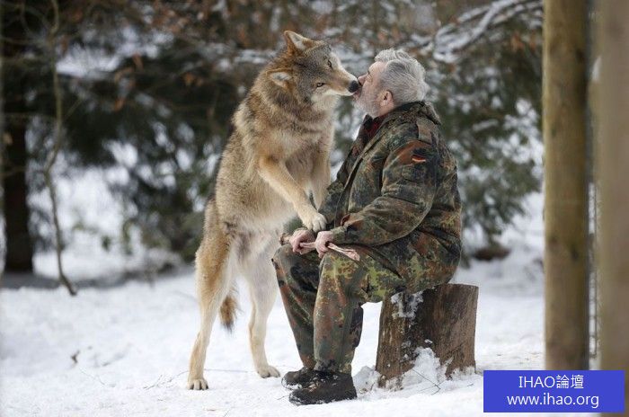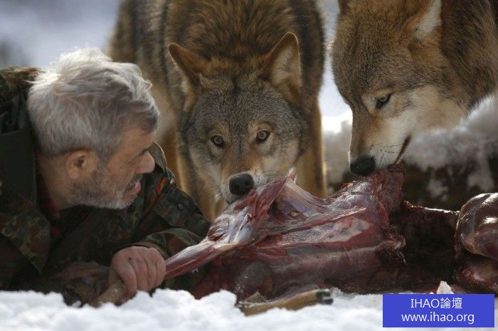 德國薩爾州的79歲男子佛羅因德堪稱不折不扣的「狼人」。1972年,他創建了一個狼群保護區。自那時起,他共飼養過70餘隻各種品種的狼。為了確立自己在狼群中的領袖地位,他堅持有肉自己先吃,然後才允許狼吃。就這樣,他成了「狼王」,狼群不但不會攻擊他,而且聽命於他。