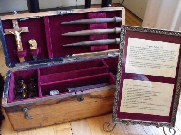 於是,一些號稱「吸血鬼獵人」的人隨之出現,他們不懼怕吸血鬼,四處尋覓吸血鬼的蹤影,自稱能將這些惡魔殺死。而他們各自都有一套能夠殺死吸血鬼的奇特裝備,其實除了我們在吸血鬼電影中常見的十字架外,還有許多其它見過和沒見過的武器。