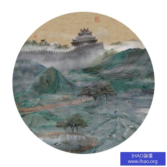 經過了影像調整,這些垃圾山幾乎和印象中的水墨相似度頗高,這是中國藝術家姚璐先生的創作,主要是為了諷刺中國長久以來的垃圾問題,覆蓋在垃圾上面的綠色細網,正是垃圾山最明顯的特色,就像真正的山一樣一座座坐落在中國土地上,也許哪天垃圾繼續暴增下去,取代大山大水的正是這些垃圾阿…