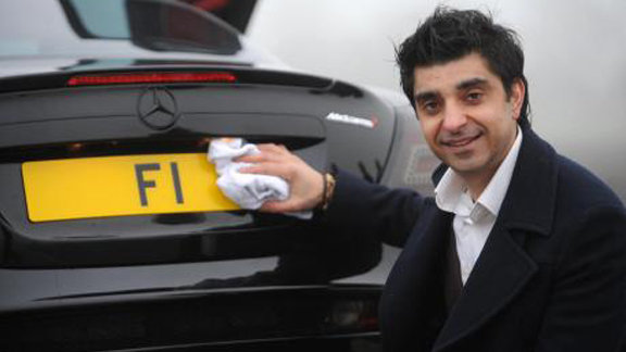 2.9億元竟然買不到一塊車牌?在英國一名商人坎恩,5年前以美金68.5萬買了僅有「F1」兩個字的車牌,沒想到現在有人以美金950萬(約台幣2.9億元)的價格要向他買這塊車牌,等於翻漲了13.5倍,但他竟毫不心動,不肯割愛。天價車牌影片po上網,引起熱烈討論,瀏覽人次更是高達95萬人。