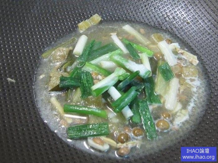4將醬汁倒入鍋內,並將蒸黃的蔥段取出,並放入新的青綠蔥段,收一下湯汁與將新的蔥段燜熟(約1分鐘)。《PS:依個人喜好,發黃的蔥段可拿也可不拿,湯汁亦是》