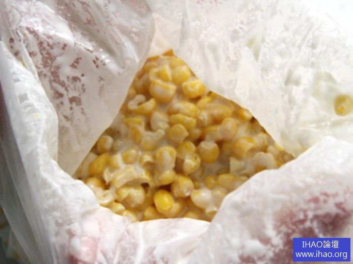 2用手將材料輕揉塑膠袋,使粉類均勻的裹上玉米粒