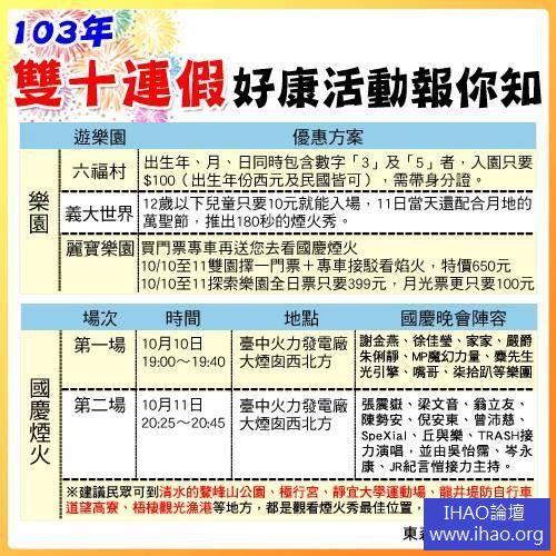 雙十連假囉(灑花) 遊樂園、看煙火 要去哪裡才好呢?!