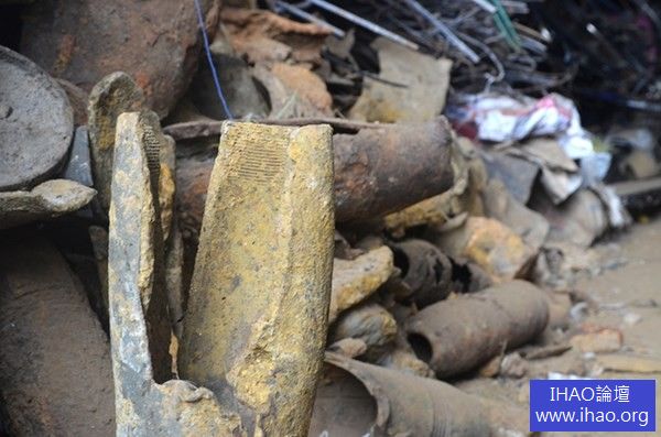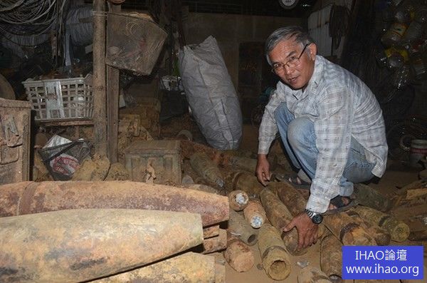 越南 廢五金回收站裡堆滿各款砲彈