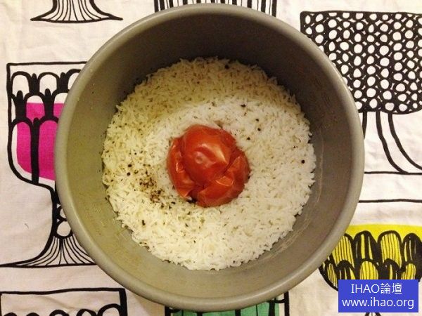 材料:熟透番茄1個,米,清水,黑胡椒,橄欖油,鹽。