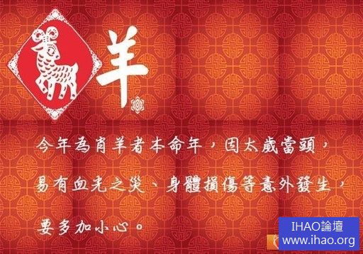 屬羊者在「乙未」年因太歲當頭,也就是俗稱的本命年,較容易有血光之災、身體損傷等意外發生,要多加小心。