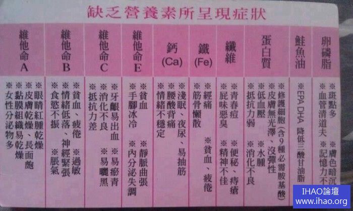 » 身體缺乏營養素所呈現的症狀