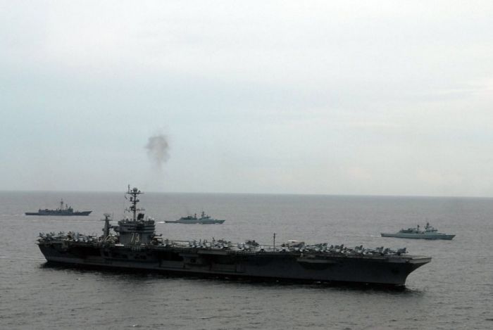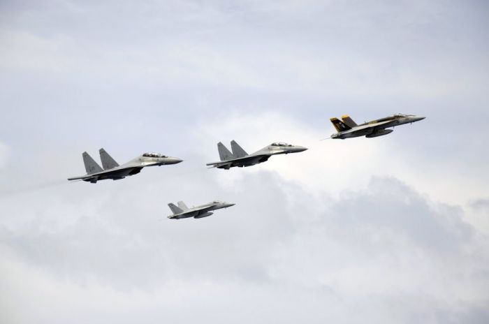 10月15日,正在南海執行戰備巡邏任務的美軍華盛頓號航空母艦戰鬥群與馬來西亞海軍進行了聯合訓練。訓練中,馬來西亞海軍派出兩艘戰艦與華盛頓號航母組成編隊航行,還派出兩架SU-30戰機與美軍第27艦載機攻擊大隊的兩架F/A-18艦載戰鬥機組成編隊飛行,從華盛頓號航母的上空飛過。