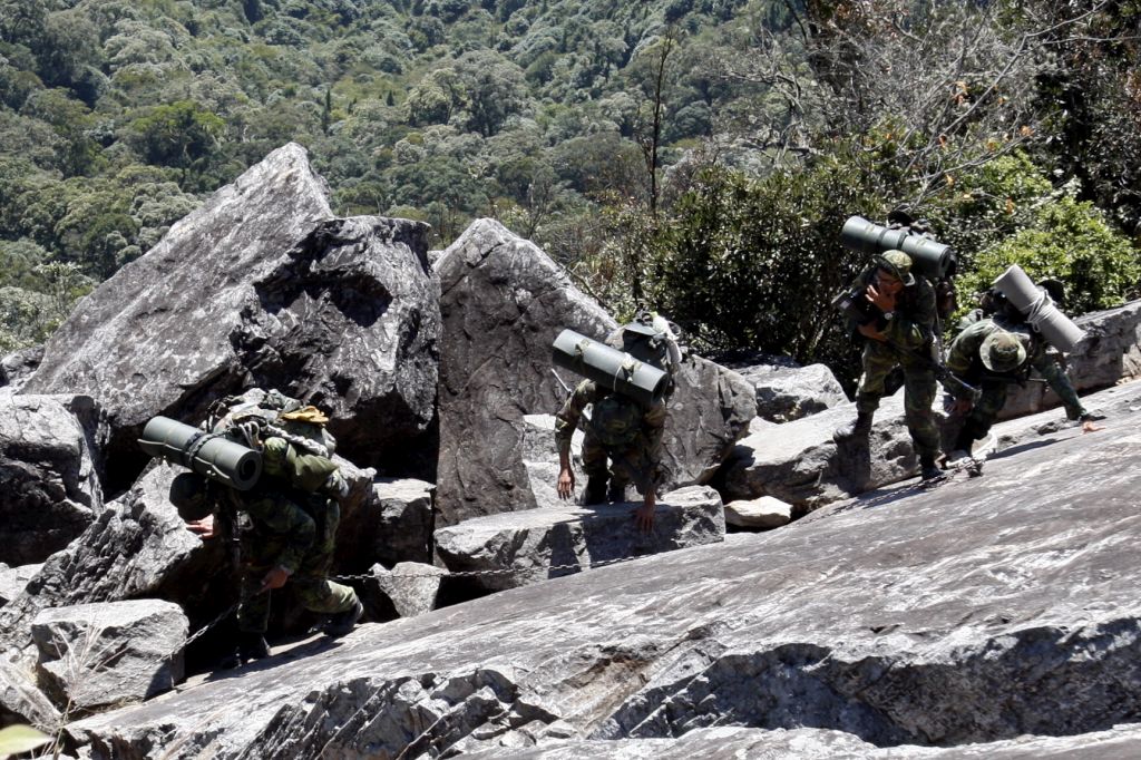 自本週一展開的陸軍突擊幹部訓練班綜合測驗,廿餘位學員在完成任務提示和安全規定後,從麗陽營區出發,一路向上往屋我尾山、鳶嘴山及小雪山等二千餘公尺高山推進,沿途翻山越嶺,通過許多山陵線、峭壁等困難地形,並演練滲透、偵察與隱伏等戰技,野營夜宿於山林間,驗證十週來訓練課程所學,也展現出學員堅持剛毅的特戰戰力。