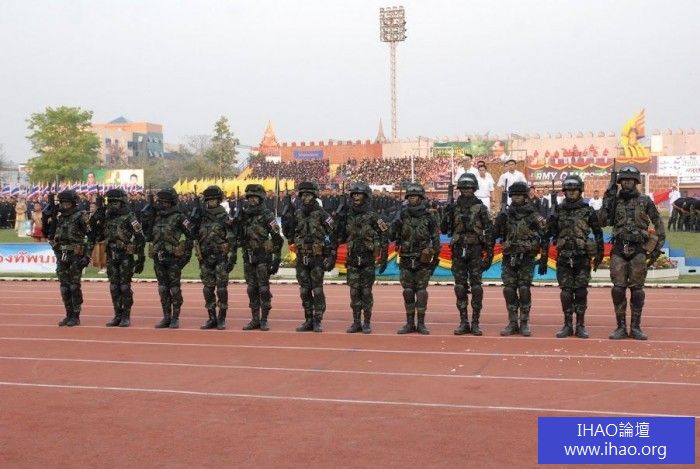 在泰國象兵是一個古老的兵種,泰國每年都要舉行象節遊行,紀念象戰。本圖為在泰國軍隊的一次集會中,兩名泰國復古大象兵正在使用紅纓槍拚殺。由於,屬於表演性質,兩名復古象兵及座騎大象並沒有身著重盔甲。