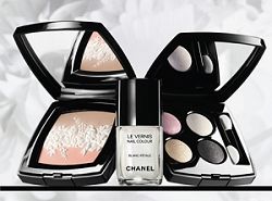 此次開幕的限量彩妝,是以高雅藝術品為設計指標,延伸香奈兒09年高級訂製服的象牙白雲裳與淨白剪紙花卉,朵朵的白花迎風飄舞在輕巧的節奏中,幻化成極緻純淨的白色交響限量彩妝,包括白色交響曲蜜粉餅、指甲油#400、以及捎來春意的柔美四色眼影。