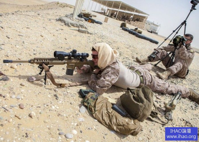 2013年4月22日,美國海軍陸戰隊第26遠征部隊狙擊分隊正在卡達的沙漠訓練基地進行精確射擊訓練。第26遠征部隊正在卡達參加代號「雄鷹決心」軍事演習。參加射擊訓練的精英狙擊手們使用著M107、M110等多種口徑狙擊步槍、高精度步槍在炎熱的沙漠地區練習多種射擊姿勢。