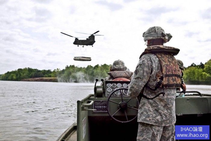 美軍362工兵連使用CH-47實施浮橋吊掛組裝訓練 本寧堡 2013.04.24