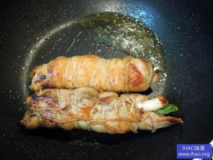 4將雞肉捲放入鍋子裡,煎到兩面金黃