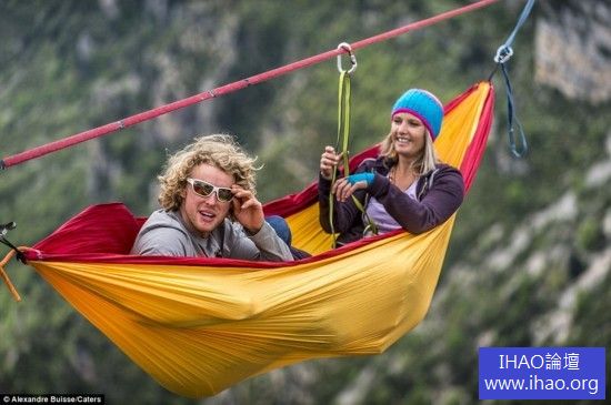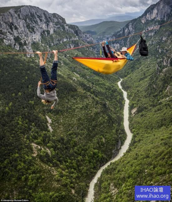 據英國《每日郵報》5月28日報導,法國探險者米奇·凱米特和朋友們在韋爾東河峽谷上方305公尺處安置了一張僅靠一根安全索鏈支撐著的吊床,以便他們一邊演奏一邊欣賞風景,其中阿明·霍爾澤演奏迪吉里杜管,尼科洛·扎拉提尼則彈奏吉他。
