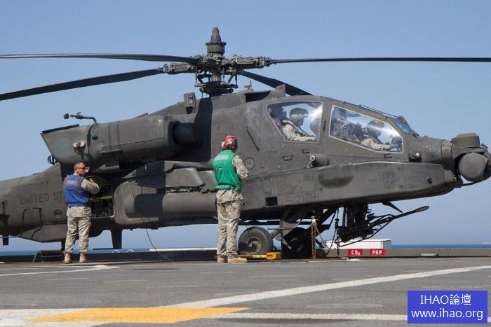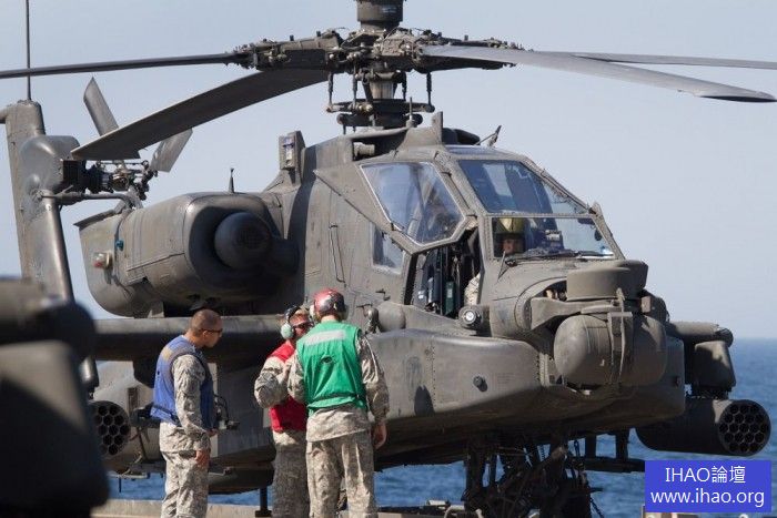 近日,兩架來自美國第36航空旅攻擊偵查大隊的AH-64D直升機在美國海軍Ponce號著艦,參加美國海軍在波斯灣的代號為「永久自由」的軍事行動。