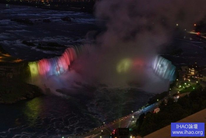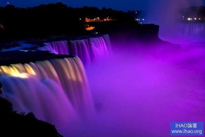 美國和加拿大交界處的尼加拉瓜大瀑布氣勢磅礡,景色壯美。根據光明網報導,瀑布周圍的各種巨型聚光燈在夜幕降臨之際都會散發光芒,遊客們可以欣賞到夕陽西下之後多姿多彩的瀑布景象。21盞直徑30英寸(約76.2厘米)的聚光燈同時照亮瀑布,形成一道道絢麗的彩虹,使瀑布別有一番風姿。