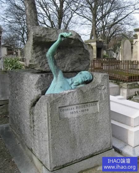位於巴黎的拉雪茲神父公墓或許是世界上訪問量最大的墓地了,這裡對於名人的紀念碑來說再熟悉不過。喬治便是其中一位了,他是19世紀的比利時作家,作品多以嚴肅風格著稱。而《Bruges-la-Morte》這本出版於1892年的小說,描寫關於一個人悼念他死去的妻子的故事。所以,這座描繪了一種痛苦而心酸的神態的銅像仿佛便是他自己。
