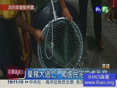 漆黑的夜色中,消防隊員守住這兩個水溝蓋,因為有隻豪豬,跑進去了,亂竄的豪豬,嚇哭孩子,消防隊用竿子去趕,豪豬總算跑出來,被抓個正著,憤怒的豪豬,全身長滿尖刺,這是民眾飼養的,卻不知道怎麼跑出來,消防隊要趕牠進桶子,還差點被扎。