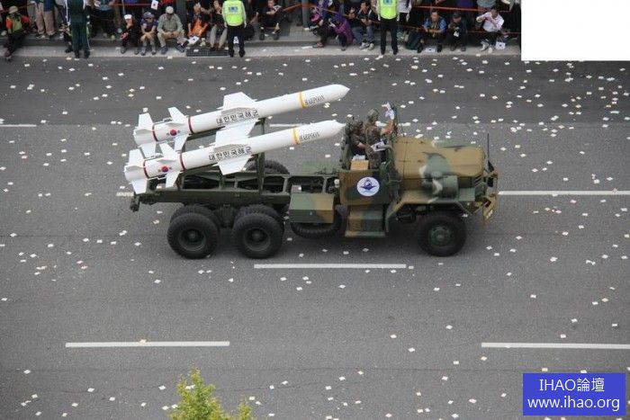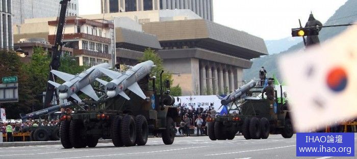 在閱兵儀式上,南韓首次公開了射程300公里的「玄武2型」和射程1000公里的「玄武3型」彈道飛彈,還有射程300公里的陸軍戰術飛彈(ATACMS)、潛對艦魚雷「白鯊魚」和「青鯊魚」及防空飛彈「SM-2」等尖端武器。「玄武3型」飛彈去年11月已首度部署在南韓海軍驅逐艦。