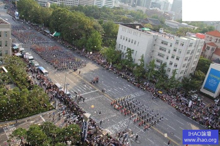 為紀念建軍65周年,南韓1日舉行閱兵典禮,朴槿惠總統親臨致詞並檢閱部隊。