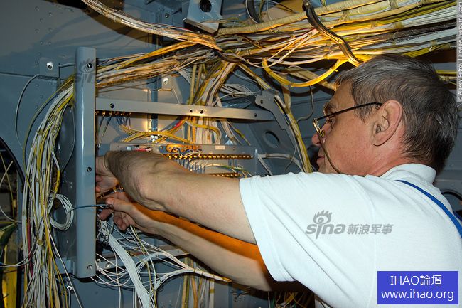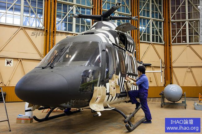 工人正在為直升機安裝線路