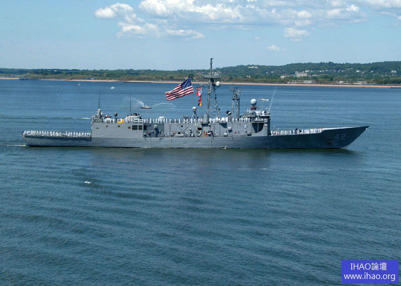 主要參數服役時間:1977年11月標準排水量:2750噸滿載排水量;3640噸最大航速:29節續航能力:4500海裡/20節艦載武器:1座MK13-4型“標準”/“魚叉”導彈兩用發射架,其中“魚叉”反艦導彈備彈10枚,“標準”防空導彈備彈30枚;1座MK15“密集陣”近程武器系統;2座三聯裝MK32魚雷發射管,發射MK46-5或MK50魚雷艦載直升機:2架“海鷹”SH-60反潛直升機,載“企鵝”反艦導彈和MK46型魚雷