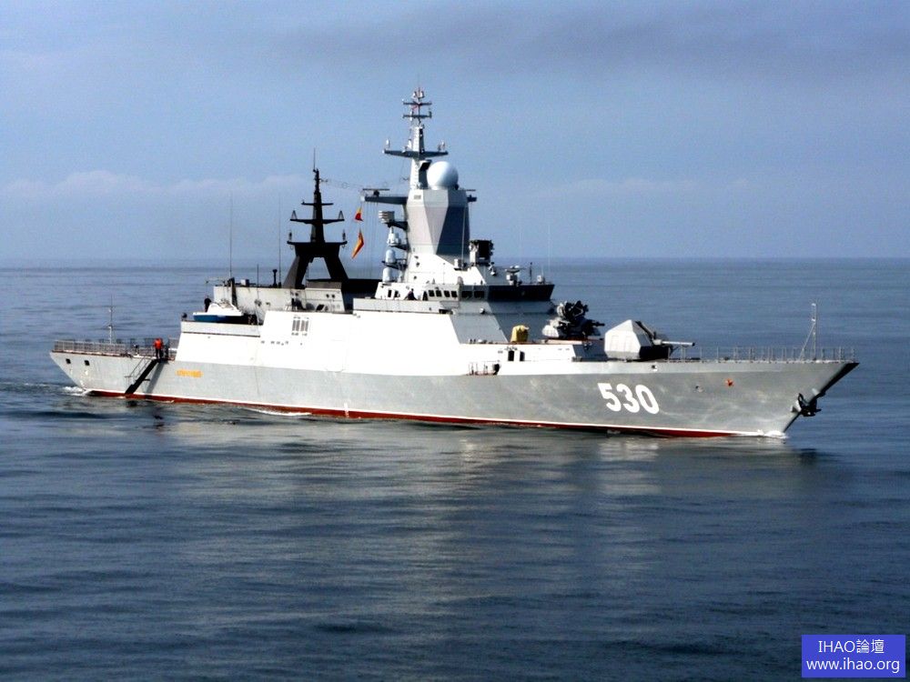 主要參數服役時間:2008年10月標準排水量:1800噸滿載排水量:2200噸最大航速:28節續航能力:4000海裡/14節武器系統:1門100毫米A-190火砲;2座卡什坦近程防禦系統;2門30毫米AK-630M六管高炮;2座4聯裝垂直導彈發射裝置(可發射8枚Kh-35“天王星”反艦導彈);短劍-M彈砲結合防空武器系統;“針”便攜式防空導彈系統;“紙包-NK”反魚雷系統艦載直升機:卡-27型直升機