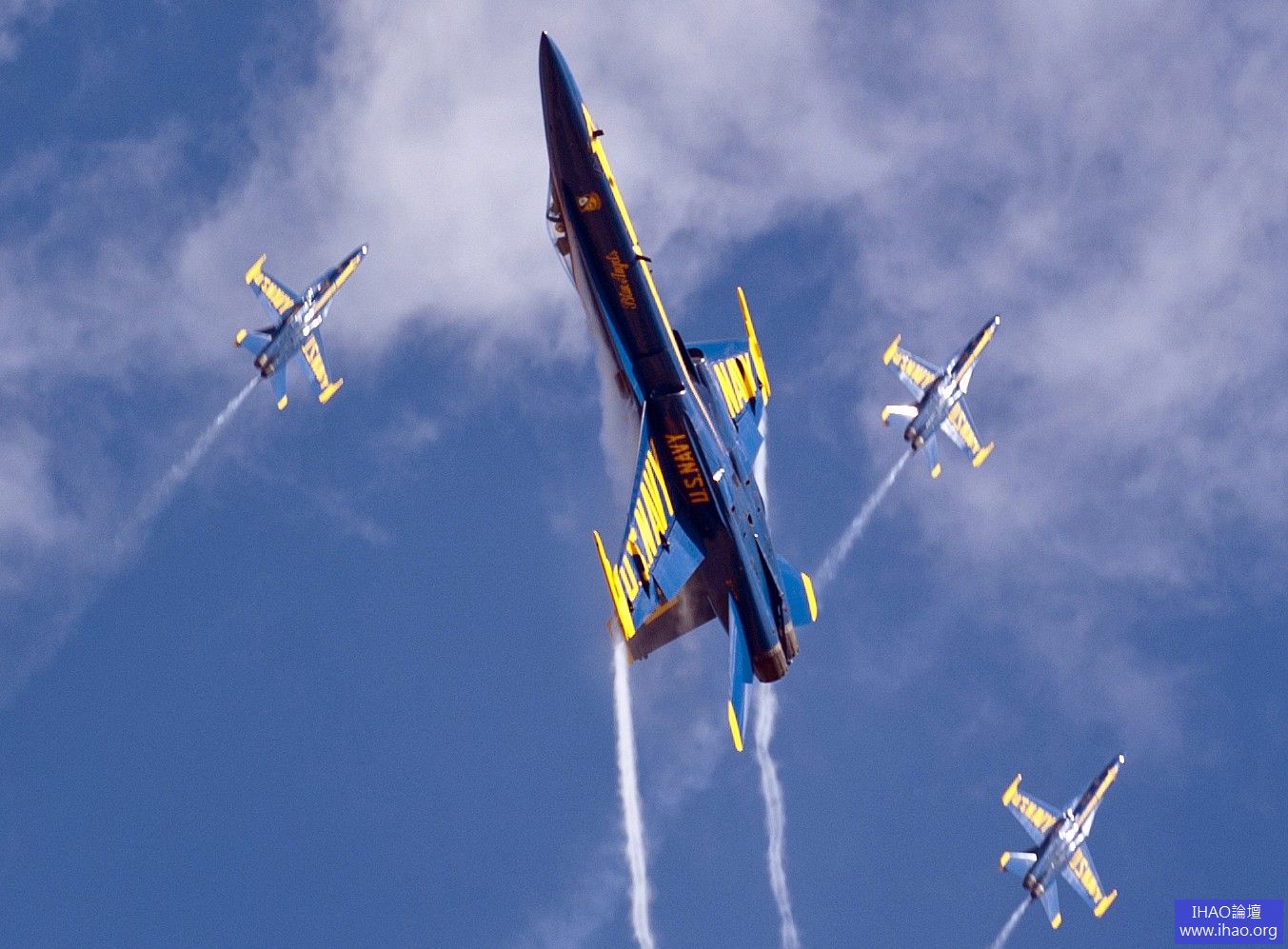 美國海軍「藍天使」(Blue Angels)特技飛行表演隊,可以在極高的飛行速度下,用極低的飛行高度進行各種高難度的炫酷表演,四機正反編隊飛行、反飛拉煙、低空飛行、雙幾正反飛行。