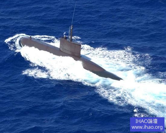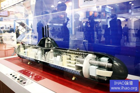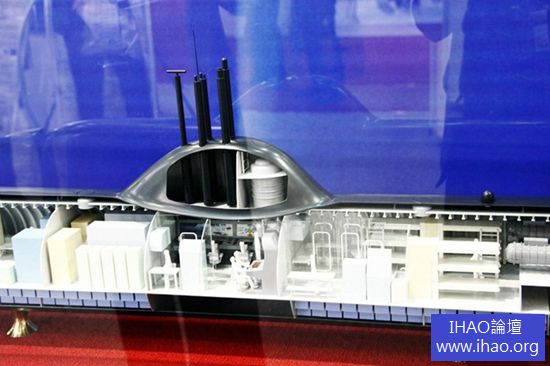 KSS-500A 型潛艇中段特寫,流線型低阻圍殼清晰可見