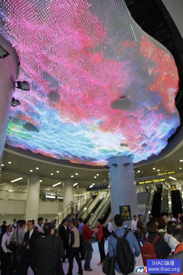 ▲大型公共藝術作品「域見」,透過50,250顆LED燈與不鏽鋼管垂直錯落出高低起伏的有機挑空造型。演繹出松山豐沛的歷史起源。(圖/簡佑庭攝)