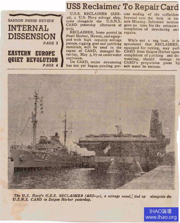 “卡德”滿載A-1攻擊機抵達越南西貢附近的芽莊港