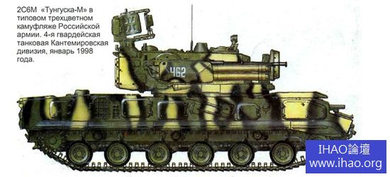 1997 年在梅吉西工程機械廠百年慶典上露面的2C6M2 型改進型通古斯卡,使用GM5975 履帶式通用底盤