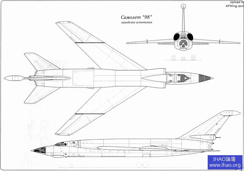 圖-98 2號原型機三面圖
