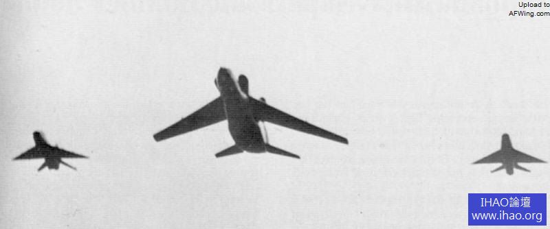 出現在1965年圖希諾航空節上的圖-98,旁邊兩架伴飛的是米格Ye-4 Ye-5驗證機